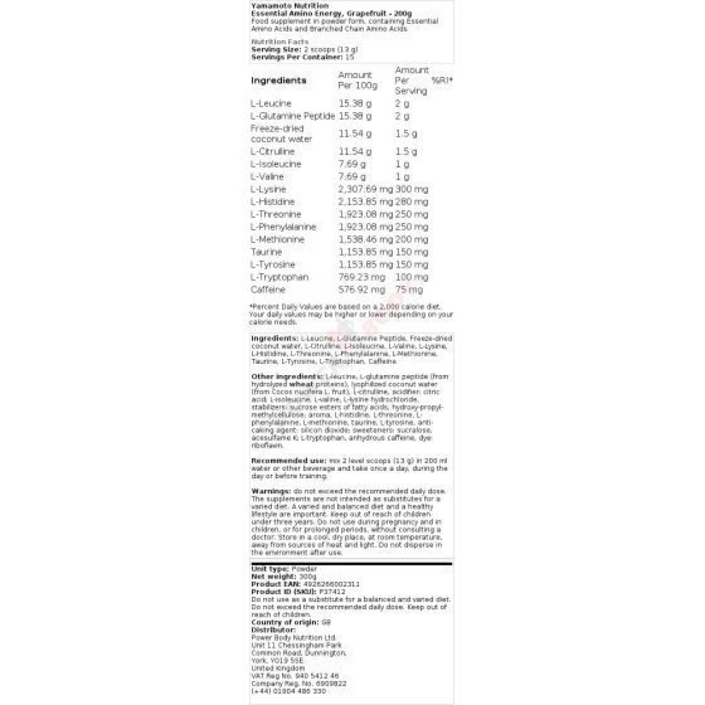 | Εμπορική ονομασία | Διάφορα ανάλογα με τη μάρκα και τη σύνθεση (π.χ. AminoX, Optimum Nutrition Essential Amino Energy) |
